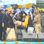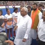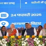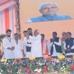 भागलपुर में आयोजित पी०एम० किसान सम्मान निधि हस्तांतरण समारोह में प्रधानमंत्री के साथ शामिल हुये मुख्यमंत्री