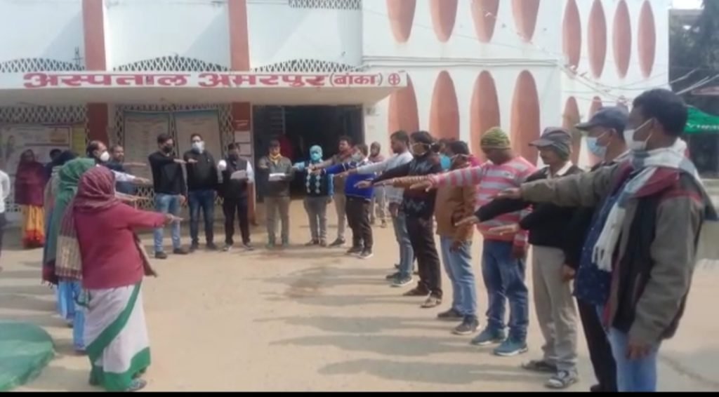 अमरपुर अस्पताल परिसर में रविवार के दिन कुष्ठ दिवस के अवसर पर शपथ ग्रहण समारोह का आयोजन किया गया। शपथ ग्रहण समारोह के पुर्व अस्पताल कर्मियों ने शहादत दिवस के अवसर पर पुज्यनीय महात्मा गांधी के तेलचित्र पर पुष्प अर्पित कर श्रद्धांजलि अर्पित किया। मौके पर अस्पताल के प्रभारी डॉ सुनील कुमार चौधरी ने मौजूद स्वास्थ्य कर्मियों को कुष्ठ रोगियों के साथ भेदभाव नहीं करने की शपथ दिलाया। साथ ही कुष्ठ रोगियों की पहचान कर नजदीकी स्वास्थ्य केन्द्रों पर समुचित उपचार कराने के लिए संकल्प दिलाया। मौके पर उन्होंने उपस्थित स्वास्थ्य कर्मियों को संबोधित करते हुए कहा कि 30 जनवरी सन् 1948 ई0 को भारत के राष्ट्रपिता महात्मा गांधी की नाथु राम गोडसे के द्वारा गोली मारकर हत्या कर दिया था। पुज्यनीय बापु कुष्ठ रोगियों के प्रति स्नेह एवं सेवा का भाव रखते थे इसिलिअ 30 जनवरी का दिन कुष्ठ दिवस के रूप में मनाई जाती है। इस अवसर पर अस्पताल प्रबंधक सुनील कुमार चौधरी, डॉ रमेश यादव, डॉ नवल किशोर साह, डाटा केयर मोहम्मद जफर मकबूल, अभिषेक कुमार घोष, रविन्द्र कुमार उर्फ भोला, आदित्य कुमार, मोहम्मद बाबर समेत अस्पताल में कार्यरत स्वास्थ्य कर्मी एवं एनएम उपस्थित थे