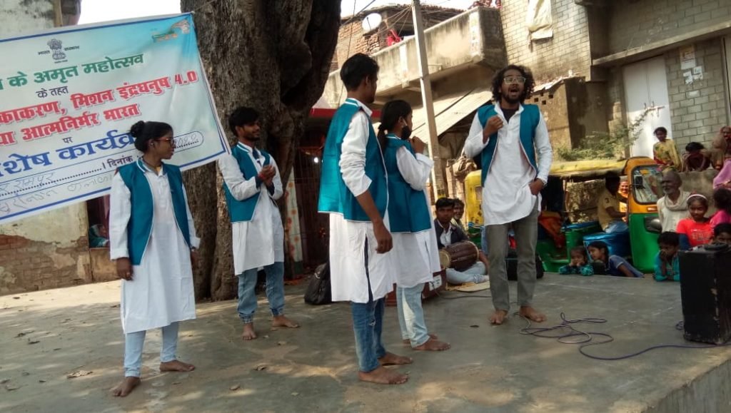 भारत सरकार के सूचना एवं प्रसारण मंत्रालय के रीजनल आउटरीच ब्यूरो पटना के पंजीकृत सांस्कृतिक दल के कलाकारों ने अपने विधा से पटना के नौबतपुर गांव , रामपुर देवी स्थान में भारत सरकार के द्वारा चलाई जा रही कोविड-19 टीकाकरण, आत्मनिर्भर भारत व मिशन इंद्रधनुष-4.0 सहित अन्य योजनाओं का जागरूकता रथ व सांस्कृतिक कार्यक्रमों के जरिए प्रचार-प्रसार किया।