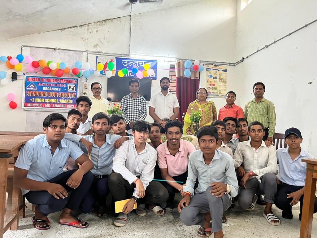 भारतीय मानक ब्यू रो, पटना शाखा कार्यालय ने आज 06 सितम्बटर 2022 को अररिया में राजकीयकृत +2 उच्च, विद्यालय एवं पूर्णिया में राजकीयकृत बालिका उच्चट विद्यालय में स्टैंिडर्ड क्लकब का उदघाटन किया। इस अवसर पर स्टैंाडर्ड क्ल ब के सदस्य छात्राओं के बीच स्टैं डर्ड राइटिंग कम्पीयटीशन का आयोजन किया गया।