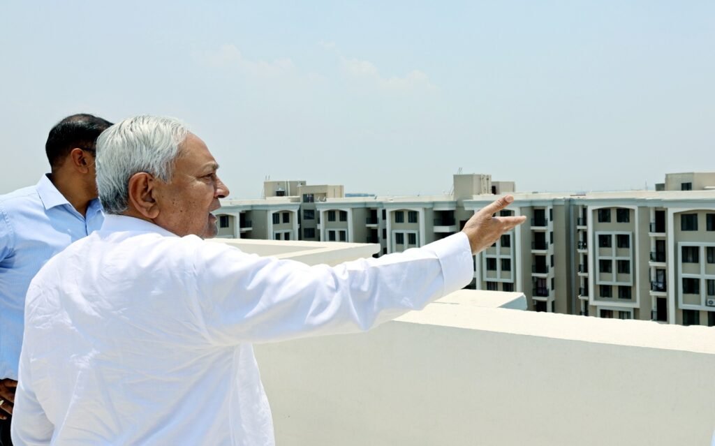 पटना, 07 जून 2025 :- मुख्यमंत्री  नीतीश कुमार ने आज गर्दनीबाग में निर्माणाधीन आँफिसर्स इनक्लेव का निरीक्षण किया। इस दौरान उन्होंने 10 मंजिला भवन का जायजा लिया। 9वें फ्लोर पर बने फ्लैट के निरीक्षण के दौरान उन्होंने फ्लैट के विभिन्न भागों – किचन, स्टोर रूम, ड्राइिंग रूम, डायनिंग रूम, बेडरूम को देखा। इसके पश्चात् मुख्यमंत्री छत पर गये और छत से पूरे परिसर का अवलोकन किया। मुख्यमंत्री ने कहा कि पूरे परिसर को साफ-सुथरा एवं हरा-भरा रखें। छत पर सोलर प्लेट लगाये ताकि सौर ऊर्जा का उत्पादन हो सके और यहां की बिजली की जरूरतों को भी पूर्ण किया जा सके।