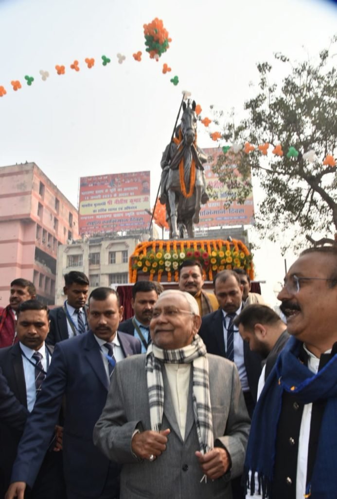 मुख्यमंत्री नीतीश कुमार ने आज पटना के फ्रेजर रोड स्थित एस0पी0 वर्मा रोड के मुहाने पर नवनिर्मित पार्क में शूरवीर महाराणा प्रताप की आदमकद प्रतिमा का लोकार्पण किया। लोकार्पण के पश्चात मुख्यमंत्री ने शूरवीर महाराणा प्रताप की प्रतिमा पर माल्यार्पण कर उन्हें नमन किया और नवनिर्मित पार्क का निरीक्षण भी किया।