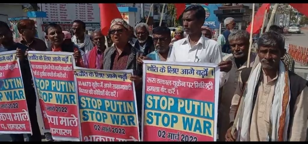 —,हमें युद्ध नहीं, शांति चाहिए । रुसी राष्ट्रपति पुतिन होश में आओ यूक्रेन पर मिलिट्री हमला बंद करो! यूक्रेन पर रुसी सैन्य आक्रमण और U S-NATO द्वारा पूर्वी यूरोप में विस्तार पर रोक लगाओ,भारत सरकार, रुस के द्वारा यूक्रेन पर मिलिट्री हमला के दरम्यान यूक्रेन में फंसे भारतीय छात्रों को सकुशल नि: शुल्क भारत लाने का प्रबंध करो आदि मांगो को लेकर आज भाकपा माले ने आज रेलवे स्टेशन से शांति मार्च निकाल कर जिला समाहरणालय गेट पहुचा जहां माले नेताओं ने सभा किया।