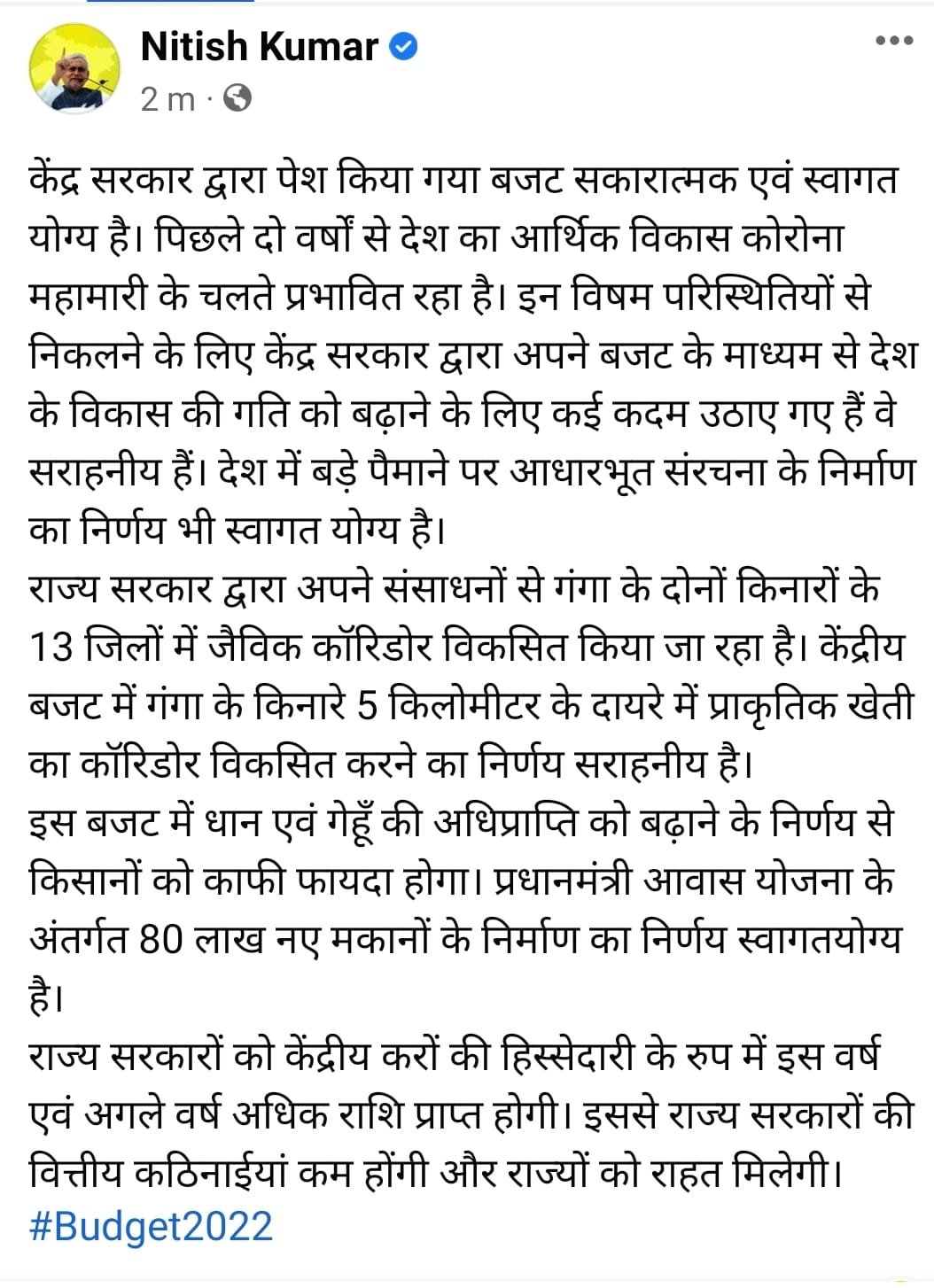 केन्द्रीय बजट सकारात्मक एवं स्वागत योग्य है : मुख्यमंत्री