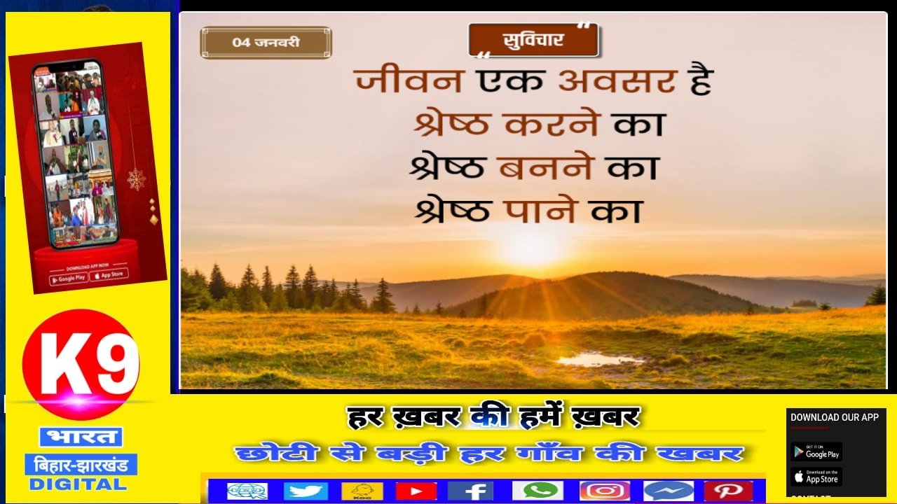 * छोटी और बड़ी खबर हर जिले की गाँव की खबर सबसे पहले * खबरों को देखने के लिए आप k9 भारत app को डाउनलोड करें , आप किसी प्रकार की चैनल जुड़ी चीज़े इस न0 से सम्पर्क कर सकते है-9472485230, 7004922809 .. k9bharatt@gmail.com...◆बिहार-70 पैसे प्रति यूनिट की दर से किसानों को दी जा रही बिजली ◆ इथेनॉल उत्पादन प्रोत्साहन नीति, 2021 लागू होने के बाद राज्य में इथेनॉल उत्पादन का काम शुरू ◆ दुर्घटना या आपराधिक घटना में मृत्यु होने पर आश्रितों को पारिवारिक लाभ योजना के अंतर्गत 20 हजार रुपये का अनुदान ◆ 'बाग उत्थान योजना’ के तहत आम और लीची जैसे फलदार वृक्षों का किया जा रहा प्रबंधन ◆ गंगाजल आपूर्ति योजना से मिटेगी लाखों लोगों की प्यास, बिहारवासियों के लिए खास यह योजना ◆बिहार के हर पंचायत में बन रहा पंचायत सरकार भवन. खास सुविधाएं ◆ उद्योग के लिए अल्पसंख्यक विभाग दे रहा इतने रुपये तक का ऋण.◆ अनुसूचित जाति एवं अनुसूचित जनजाति वर्ग के छात्र–छात्राएं “छात्रावास योजना” का लाभ लें ◆ राज्य सरकार द्वारा अल्पसंख्यक छात्रावासों में पढ़ने वाले छात्र -छात्राओं को प्रतिमाह 1,000 रूपये अनुदान राशि प्रदान की जाती है ◆ मुख्यमंत्री ग्रामीण सोलर लाइट योजना के तहत गांव के लोगों की रात अंधेरे में नहीं गुजरेगी, जगमग होंगे बिहार के गांव.◆ मुफ्त राशन योजना : राज्य सरकार अंत्योदय अन्न योजना के तहत जरूरतमंद परिवारों को कितना अनाज दे रही है ◆ राज्य सरकार द्वारा अत्यंत पिछड़ा वर्ग के छात्र-छात्राओं को जननायक कर्पूरी ठाकुर छात्रावास योजना के तहत दी जा रही निःशुल्क सुविधाएं। ◆ नल जल योजना से संबंधित शिकायत करें 1800 123 1121 पर, होगा समस्या का समाधान.◆ राज्य सरकार द्वारा कबीर अंत्येष्टि योजना के तहत अंतिम संस्कार के लिए दी जाती है आर्थिक मदद.◆ बेटियों की शादी के लिए दी जाती है आर्थिक सहायता ◆